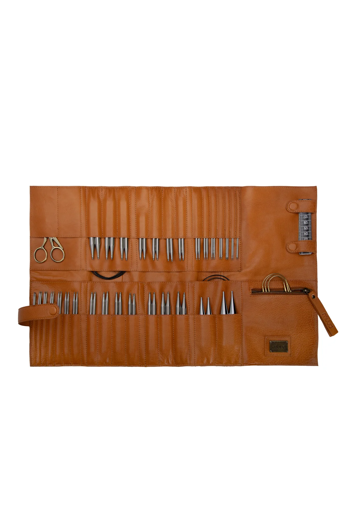 Stockholm XL från Muud är en större version av populära Stockholm. Det här är ett riktigt rymligt fodral till ändstickor och kablar. Det viks ihop för smidig förvaring, och viks upp för perfekt överblick. Fodralet rymmer 32 par ändstickor (2 rader med 16 fack), från 2 mm till 15 mm. Det har flera fickor för kablar och tillbehör.