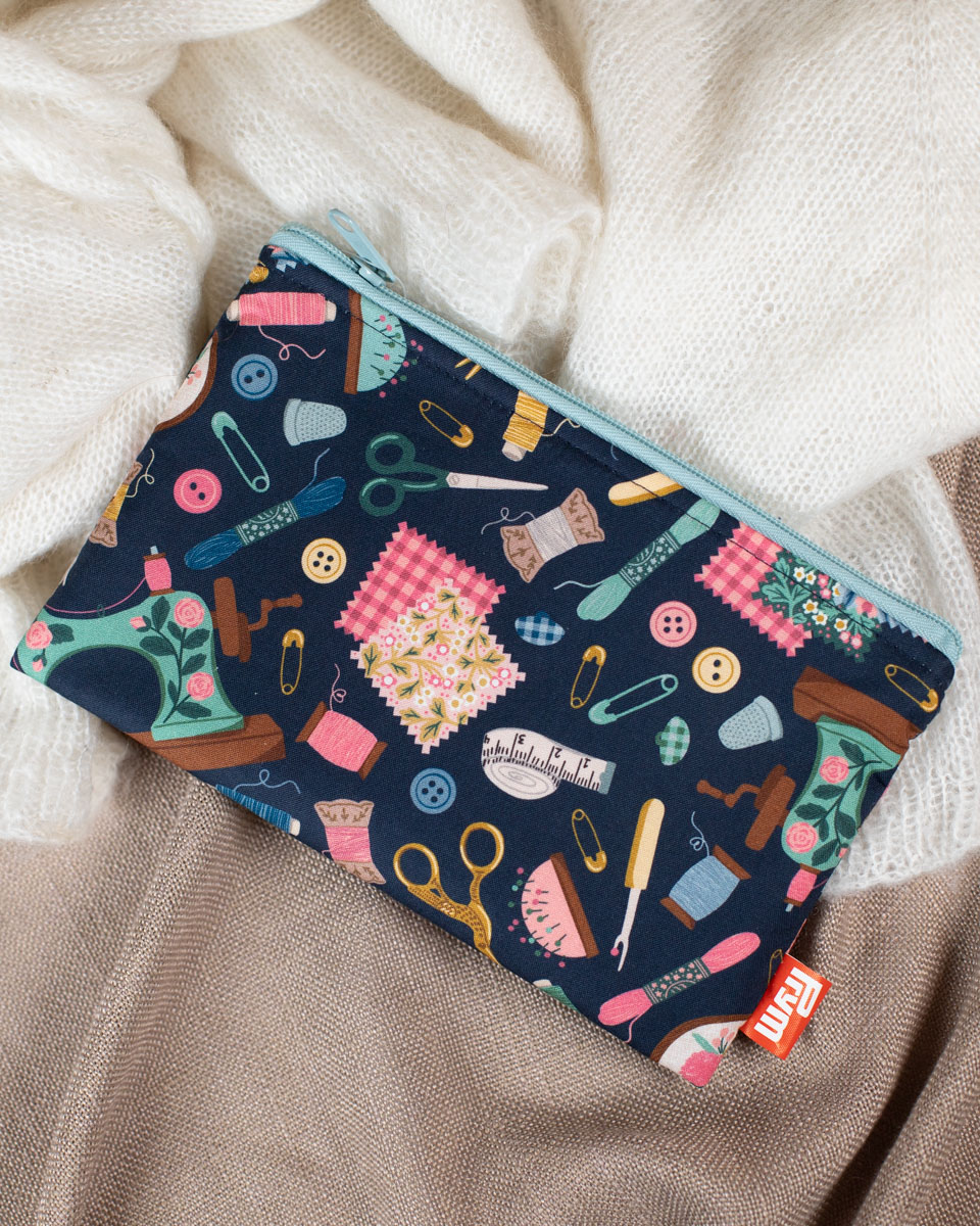 Prym Fodral till Tillbehör är ett mjukt men stadigt tygfodral med dragkedja. Det har generös storlek utan att bli klumpigt, och rymmer en hel del. Inuti finns en avdelare i tyg, som delar upp utrymmet i två avdelningar. Mått: 230 mm x 140 mm x 10 mm.