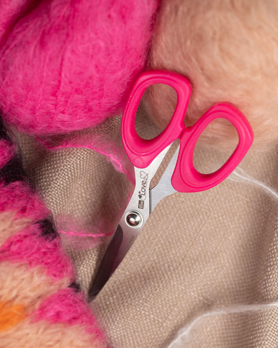Saxen Prym Love är en mångsidig sysax i mellanstorlek. Den mäter 13,5 cm, och är perfekt till allt från trådklipp till steekning – saxen är smidig att hantera, men den ger lite mer att hålla i än en mindre broderisax.