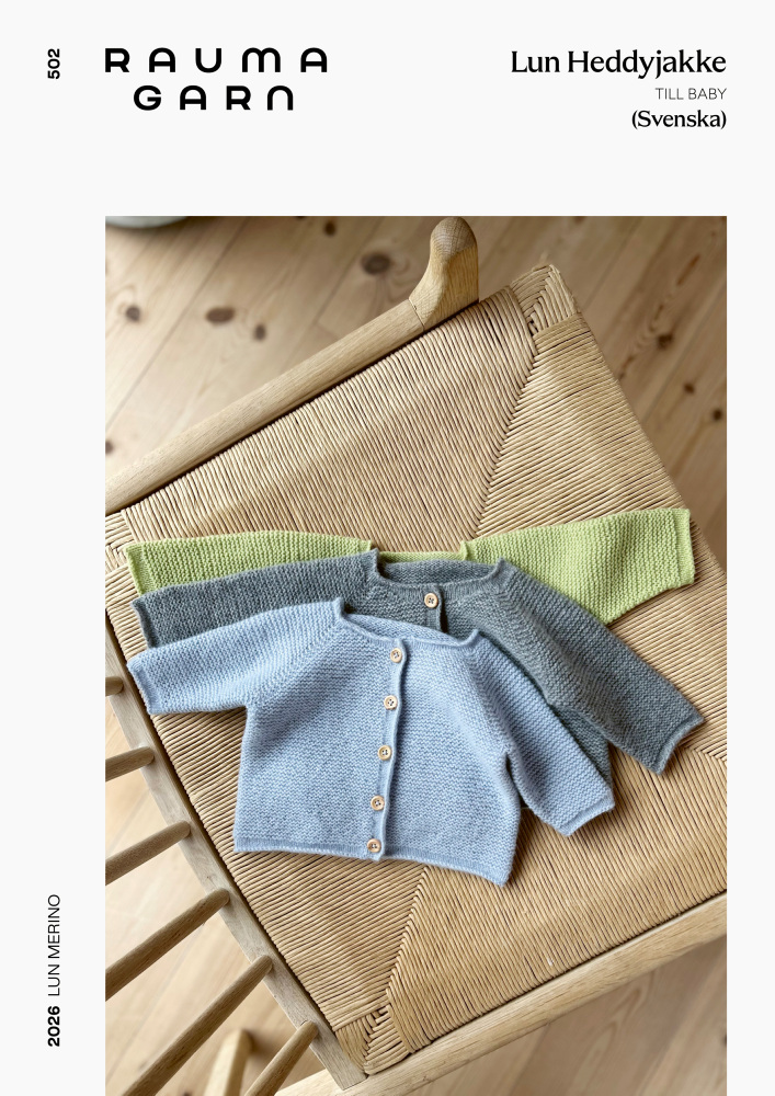 Det här är mönsterbladet Lun Heddyjakke (503) från Rauma – en klassisk, ursöt kofta till baby (storlek 50 – 86) som stickas i rätstickning i det mjuka garnet Lun Merino från Rauma. Mönsterbladet är på svenska!