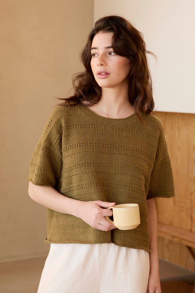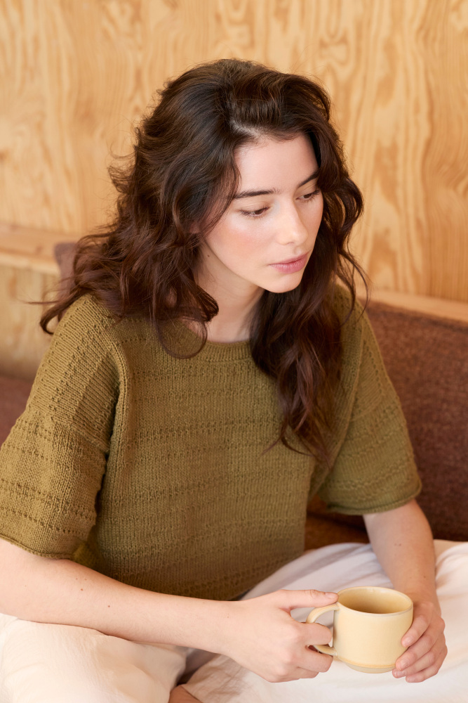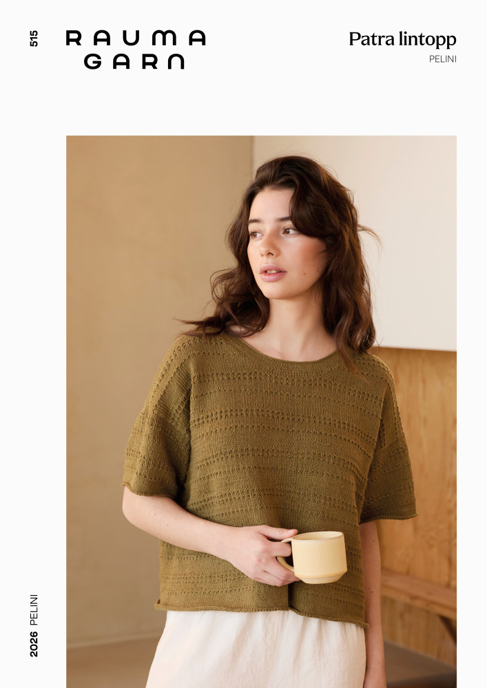 Det här är mönsterbladet Patra lintopp (515) från Rauma – den perfekta svala sommartoppen som stickas i garnet Pelini från Rauma. En blandning av lin och bomull ger bomullens följsamhet tillsammans med linets struktur.